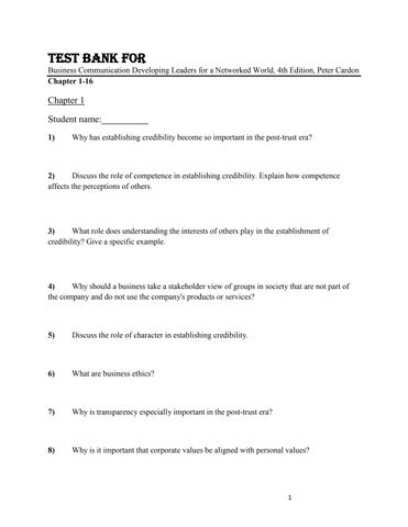 Test Bank For Business Communication Developing Leaders for a Networked World, 4th Edition, Peter Cardon Chapter 1-16