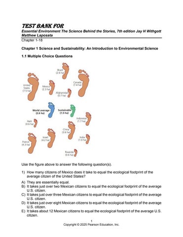 TEST BANK FOR Essential Environment The Science Behind the Stories, 7th edition Jay H Withgott Matthew Laposata Chapter 1-18 Chapter 1 Science and Sustainability: An Introduction to Environmental Science 1.1 Multiple Choice Questions
