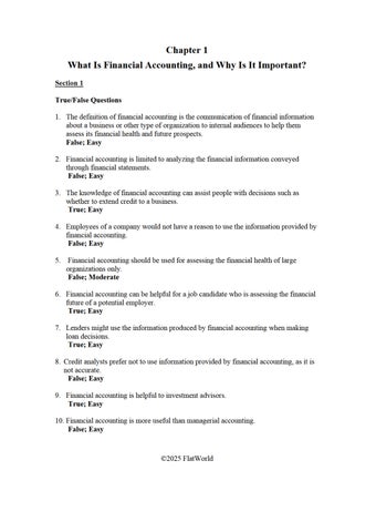 Each chapter is organized to evaluate both conceptual understanding and computational accuracy, helping students build confidence in applying accounting standards and financial analysis techniques. Ideal for quizzes, exams, practice assessments, and independent review, this material serves as a dependable companion for coursework and instruct