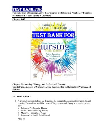 Chapter 01: Nursing, Theory, and Professional Practice Yoost: Fundamentals of Nursing: Active Learning for Collaborative Practice, 3rd Edition MULTIPLE CHOICE 1. A group of nursing students are discussing the impact of nonnursing theories in clinical