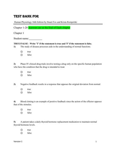 Test Bank for Human Physiology 16th Edition by Stuart Fox and Krista Rompolski