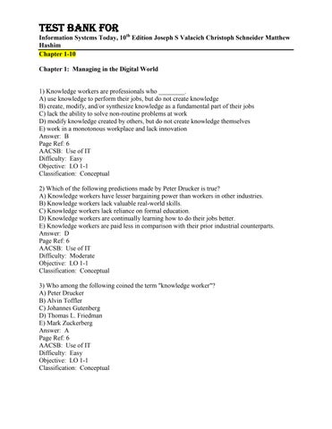Test Bank For Information Systems Today, 10th Edition Joseph S Valacich Christoph Schneider Matthew Hashim Chapter 1-10 Chapter 1: Managing in the Digital World