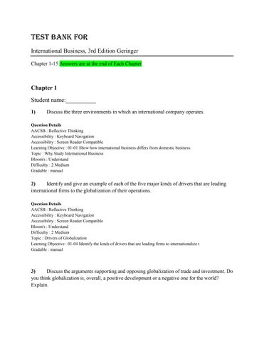 Test Bank for International Business, 3rd Edition Geringer Chapter 1-15 Answers are at the end of Each Chapter