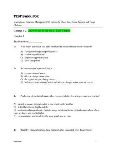 Test Bank for International Financial Management 9th Edition by Cheol Eun, Bruce Resnick and Tuugi Chuluun