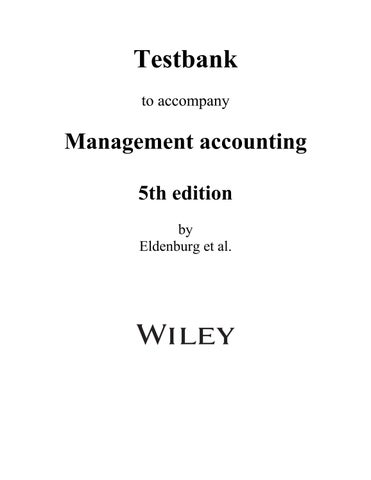 Download the complete Test Bank for Management Accounting, 5th Edition by Leslie G. Eldenburg, Albie Brooks, and Gillian Vesty. This comprehensive digital resource provides a wide range of exam-ready questions designed to help instructors create assessments and students practice and master management accounting concepts.