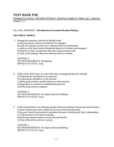 Test Bank for Managerial Economics, 10th Edition William F. Samuelson, Stephen G. Marks, Jay L. Zagorsky Chapter 1-17