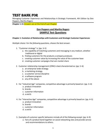 Test Bank For Managing Customer Experience and Relationships A Strategic Framework, 4th Edition by Don Peppers, Martha Rogers Chapter 1-15 Answers are at the End of Last Chapter