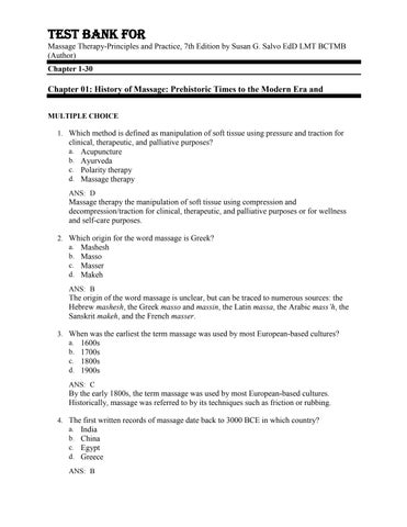Test Bank For Massage Therapy-Principles and Practice, 7th Edition by Susan G. Salvo EdD LMT BCTMB (Author) Chapter 1-30
