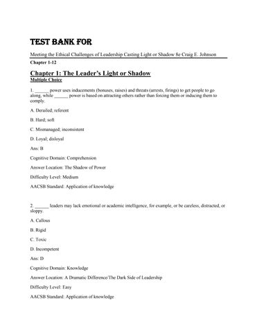 Test Bank For Meeting the Ethical Challenges of Leadership Casting Light or Shadow 8e Craig E. Johnson Chapter 1-12