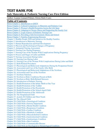 TesT Bank For Safe Maternity & Pediatric Nursing Care First Edition Author: Luanne Linnard-Palmer, Gloria Haile Coats: