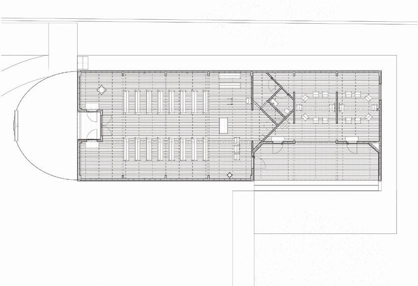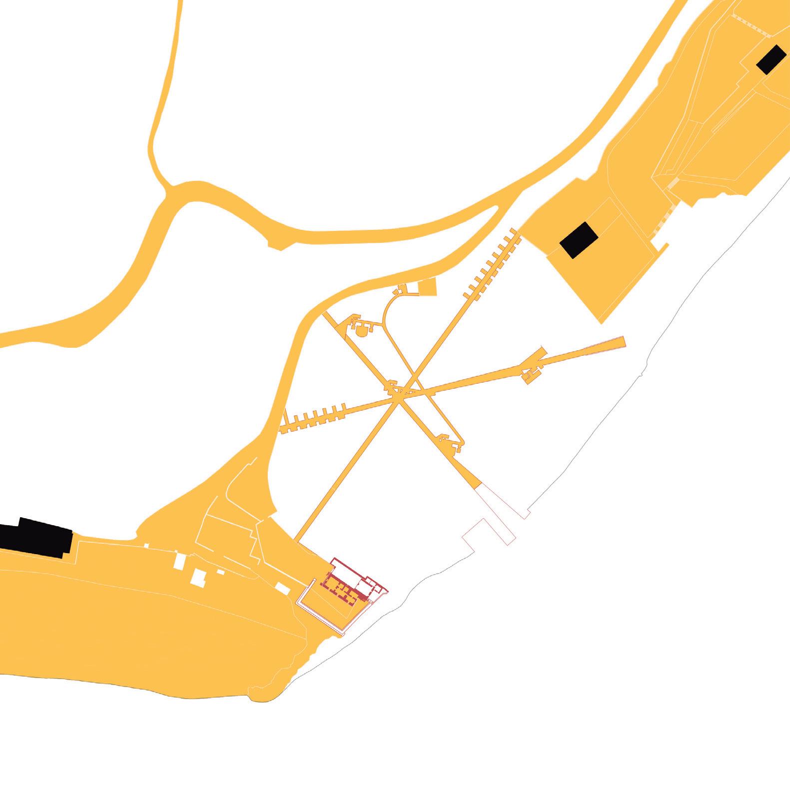 Additionally, a set of supporting spaces (changing rooms, shops, cafeterias, small workshops) would be organized along one of the axes, introducing differ ent depths that would enrich the visitor experience and offer different possibilities of appropriation. At the intersection of these macro-architectural ele ments, a special collective space of contemplation would be shaped, celebrating the place’s historical memory, and providing a new atrium or entrance gate to the Arrábida hills range and its protected landscape and natural values.