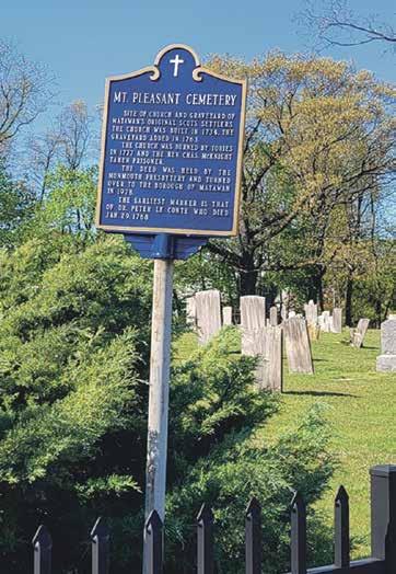 Main Street and 516, has been refurbished by the Historical Sites Commission, and reinstalled. It marks the spot of the original Presbyterian Church in Matawan, and the cemetery that surrounded it. According to Matawan and Aberdeen: Of Town and Field by Helen Henderson and the Matawan Historical Society, “The 1763 deed for 1.88 acres for the Mt. Pleasant church property was made to the Presbyterian Church of Monmouth County…” Thirteen Revolutionary War veterans are buried there. The cemetery was used for burials by the Presbyterian Church until 1959, and deeded to the Borough in 1978, when it came under the care of the Historical Sites Commission.