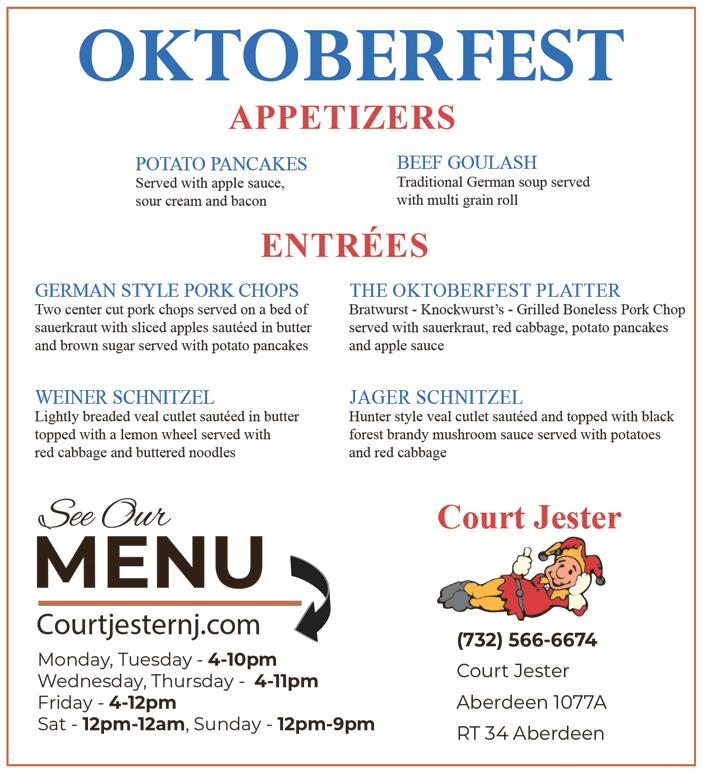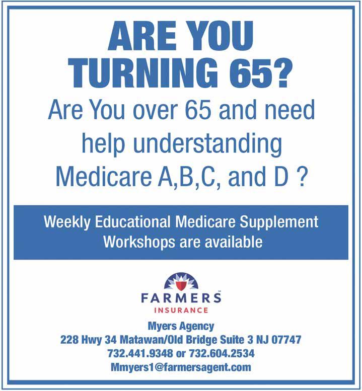 Continue from page 1 our next monthly Meet and Greet on October 18th at Kearny Bank 510 Rt.34 from 5:30 to 7 p.m., bring plenty of business cards and meet business people from our community. Also, coming on Nov. 1st will be our business Luncheon at Sahara 34 restaurant 1008 Rt. 34 at 12 noon. Visit our website MACOCNJ. com for more information.