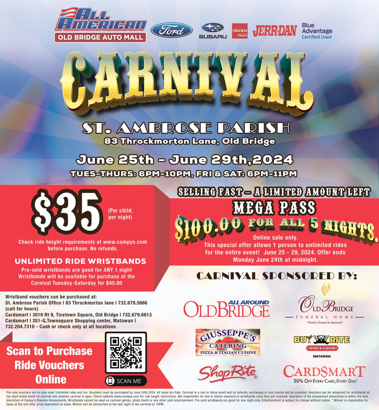 ST. AMBROSE PARISH ANNUAL CARNIVAL JUNE 25TH-29TH 5-NIGHT SUPER MEGA-PASS AVAILABLE!