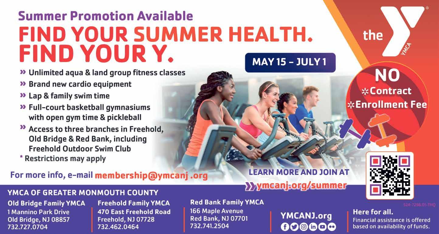 The Y brings wellness and people together! From May 15 – July 1, take advantage of our membership with no enrollment fee or contract, access to unlimited group and aqua fitness classes, healthy activities for all ages and abilities, and full access to all 3 YMCA branches in Red Bank, Old Bridge, Freehold and Freehold Outdoor Swim Club. Join us at the YMCA of Greater Monmouth County for a season of fun, adventure, and growth. With our exciting summer promo, there’s never been a better time to discover all that the Y has to offer. Whether you’re a child, teen, adult, or senior, there’s something for everyone at the