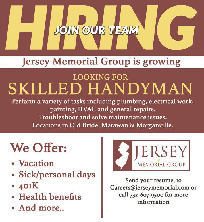 people and stories behind our town. Presented by the Matawan Borough Economic Development, Business & Redevelopment Commission and the Matawan-Aberdeen Chamber of Commerce, Matawan Day is a celebration of all that makes our town special. Don’t miss your chance to be part of it! Vendor spots and sponsorships are available but moving fast! Give your business the chance to connect directly with a diverse audience. Visit www.macocnj.com and click on Matawan Day 2025 to learn more.