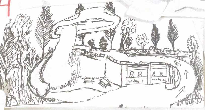 1. Park Entrance 2. Multi-Use Building A 3. Maintenance Building 4. Dining A 5. Carousel 6. Multi-Use Building B 7. Dining B 8. Green House 9. Food Pantry 6 10. Pollinator Gardens 11. Multi-Use Building C 12. Retail/Dining C 13. Pollinator Gardens 14. Library 15. Multi-Use Building D 16. Lake Walking Loop 17. Pic-Nic Pavillion Legend: Design intent: Create a small park with a variety of retail locations, social services and attractions, Entrance Plaza