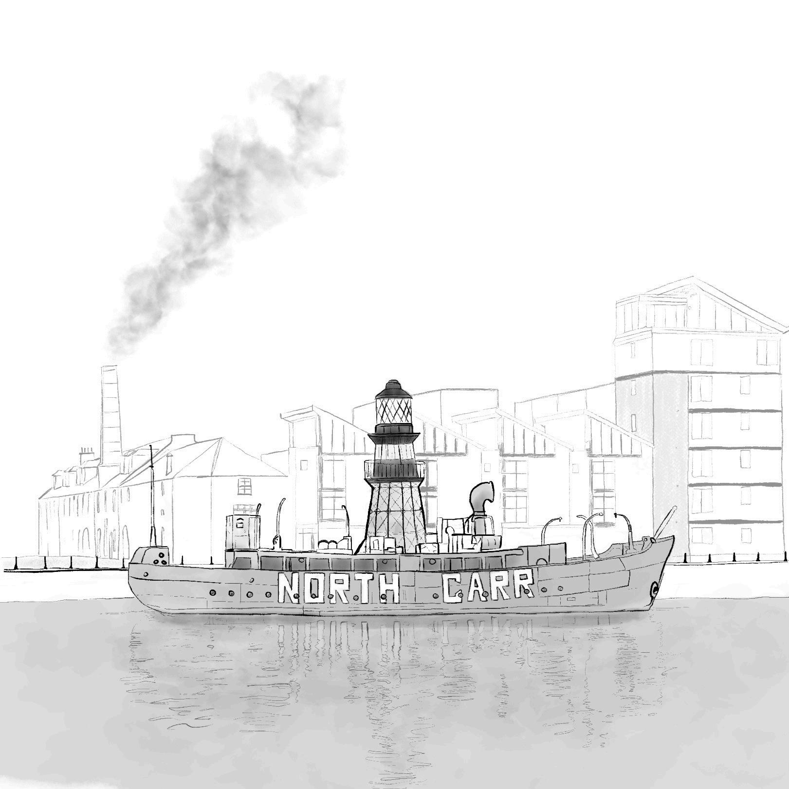 BELOW: A drawing of the North Carr boat in Dundee Harbour on a crisp winter day.
