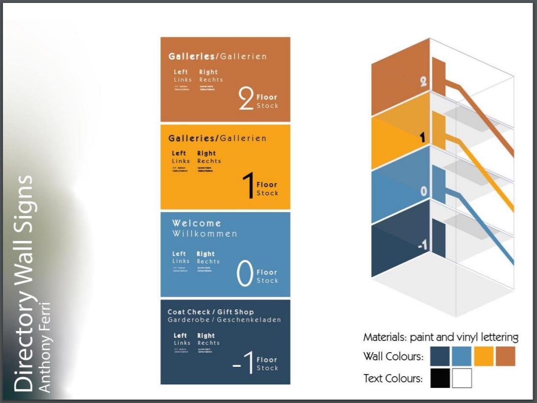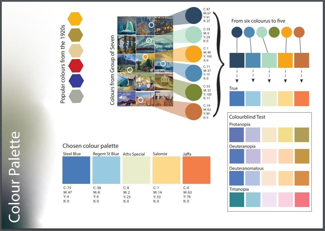 Part of the Wayfindnig Design short course program at the University of Arts London, required us to re -design a small living -space into a museum setting and create a wayfinding visual identity for the space. I chose the housing complex I lived in as my potential "museum space". I developed a colour palette based off he early 1900s artist collective The Group of Seven’s artwork.