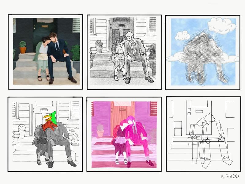 UPPER LEFT: I created this image for a friend of mine as a housewarming gift. I wanted to capture the loving playfulness of their relationship.
