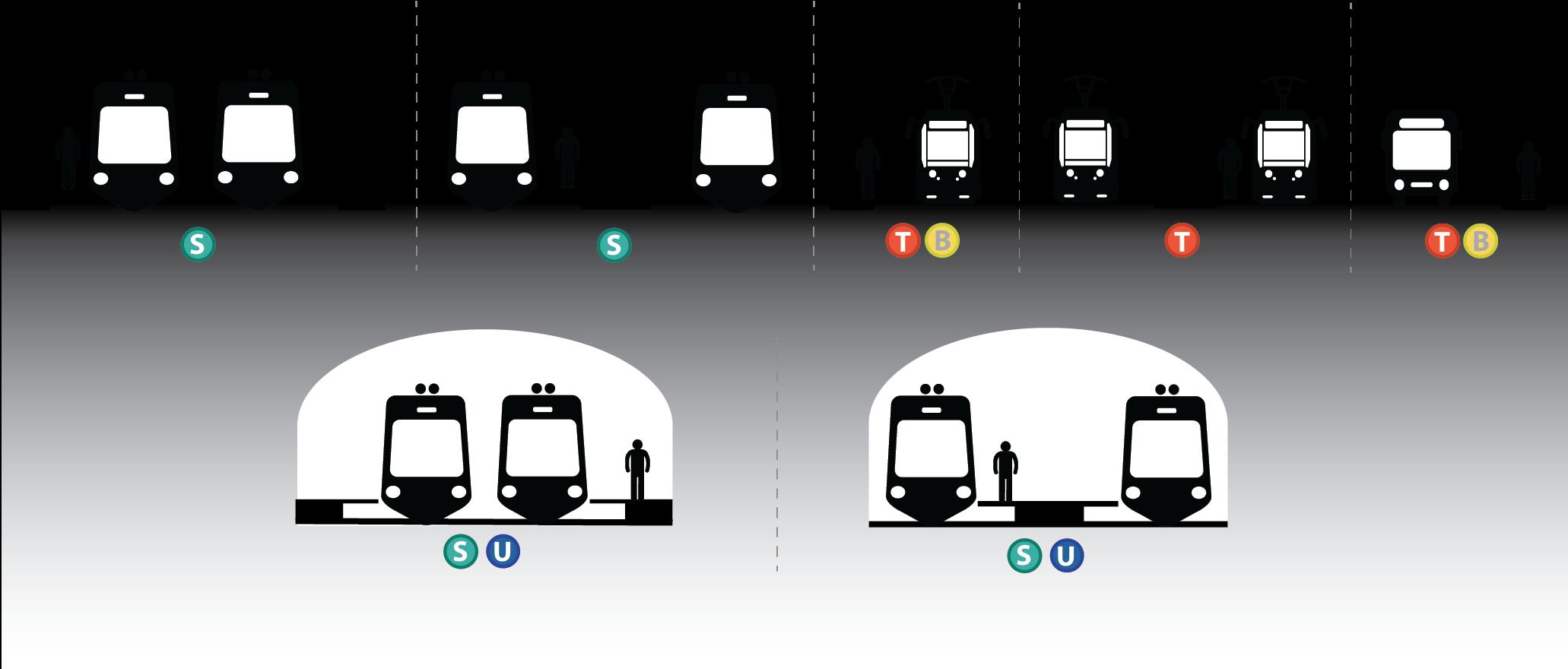 Part of my PhD research involved creating a method to study user behaviour in public transit. Documenting said behaviour on a map was key to visualizing the data. Multiple maps were created to visualise the varied elements of public transport and wayfinding within these environments. Icons were needed to depict specific transit modes.
