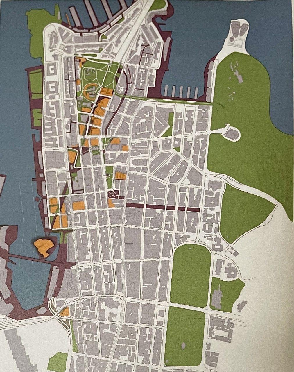 BELOW: Part of a design project during the Master of Urban Development and Design program at the University of New South Wales, I designed what Sydney could look like without an elevated highway running through the Central Business District and presupposes the highway is buried underground. The central axis remains to allow for a reknitting of the of the city grid by highlighting the connection between Darling Harbour and Circular Quay.