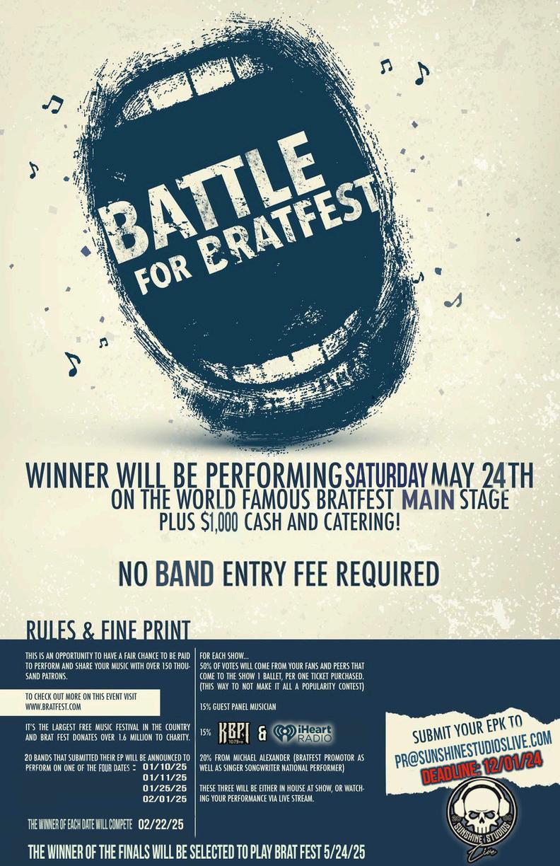 Any upcoming shows? We’re just coming off a great show at Sunshine Studios Live on Nov. 1. We have another show in the works there in the New Year. Stay tuned!