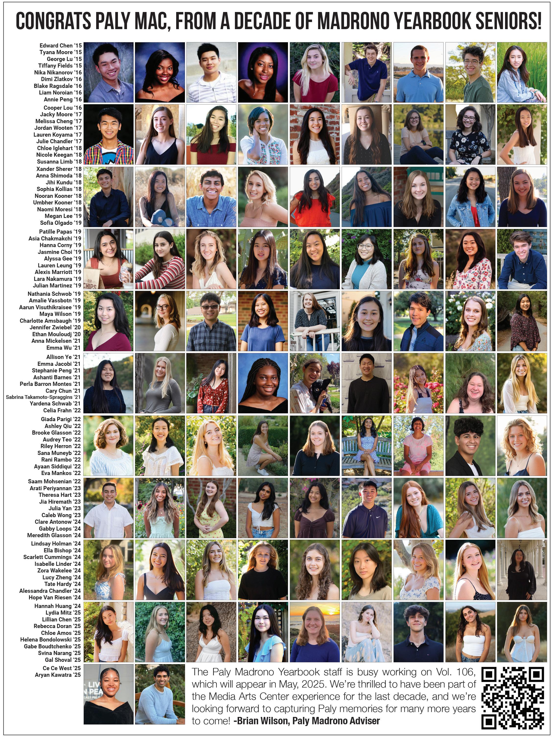 First and foremost, we would like to express deep gratitude to the beautiful MAC space, resources, teachers and incredible community they have built over these years. To the Paly journalism advisers, the MAC Boosters Board, the Esther Wojcicki Foundation and the Anne Wojcicki foundation — thank you. Thank you for your dedication to us student journalists, allowing us to build our journalistic skills while utilizing our individual creativity.