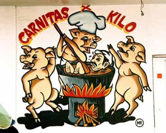Y no vayamos a otro momento histórico o país. Hoy día, dentro del folklore mexicano, lo podemos apreciar en cualquier esquina, ya sea en una imagen súper popularizada del Chavo del ocho en pro de la defensa de los derechos o bien, haciendo alusión a nuestras tradiciones que se han convertido en un referente a nivel mundial. Ejemplo de esto son las calaveras de azúcar, que ya cualquier persona ajena a nuestra cultura la trae tatuada en el brazo o la utiliza como logo para hacer referencia a algo que está “como para morirse” o simplemente, al ser bonita y colorida, para llama la atención. Otro referente es la imagen de Frida Kahlo, la cual se ha convertido en nuestra Marilyn Monroe, pero claro, tropicalizada y popeada , con una imagen súper explotada y con mil variantes.