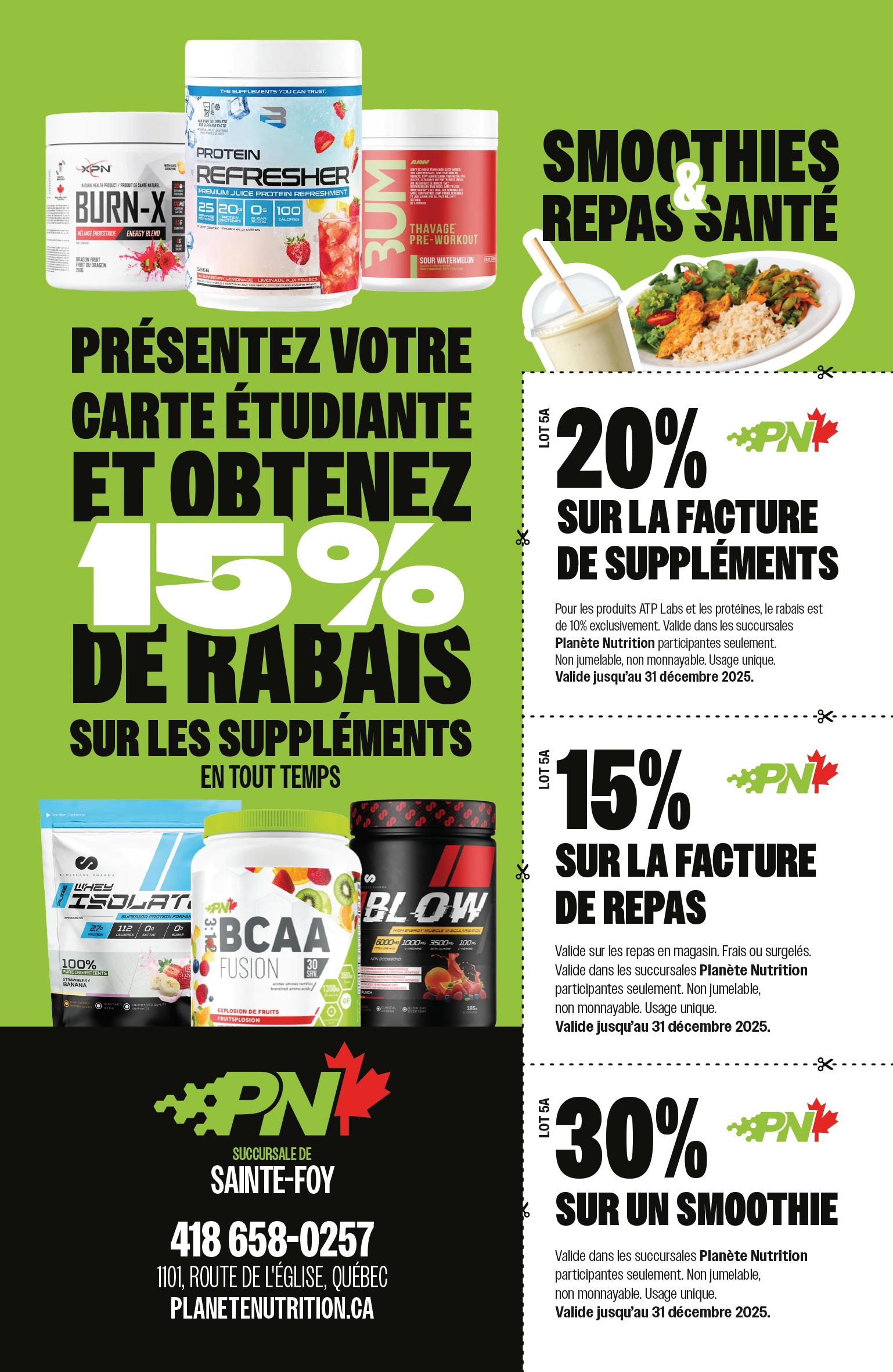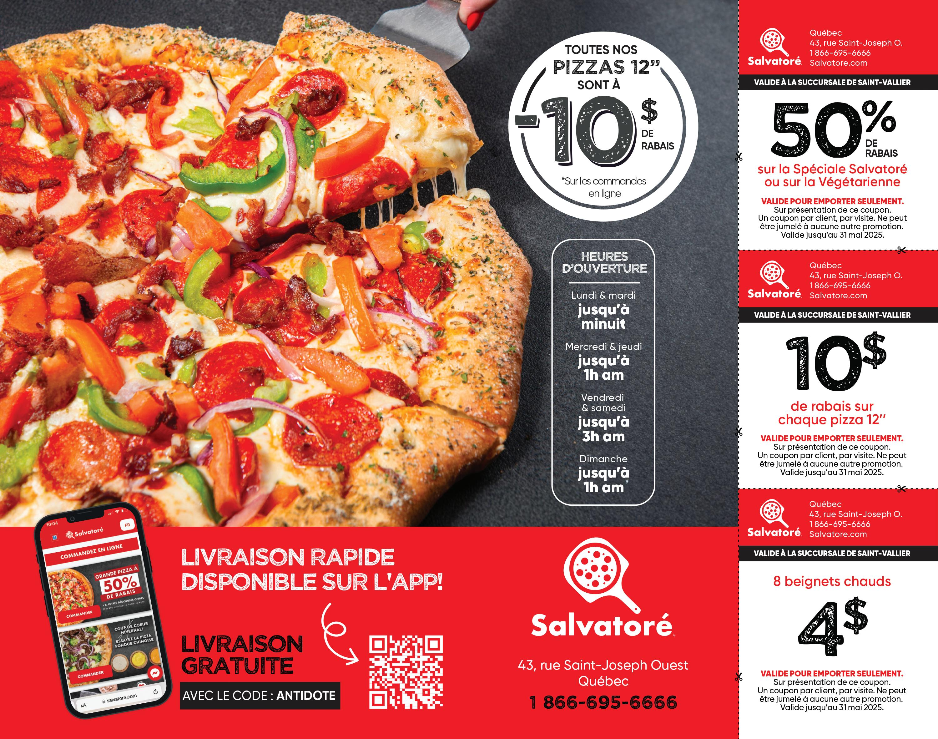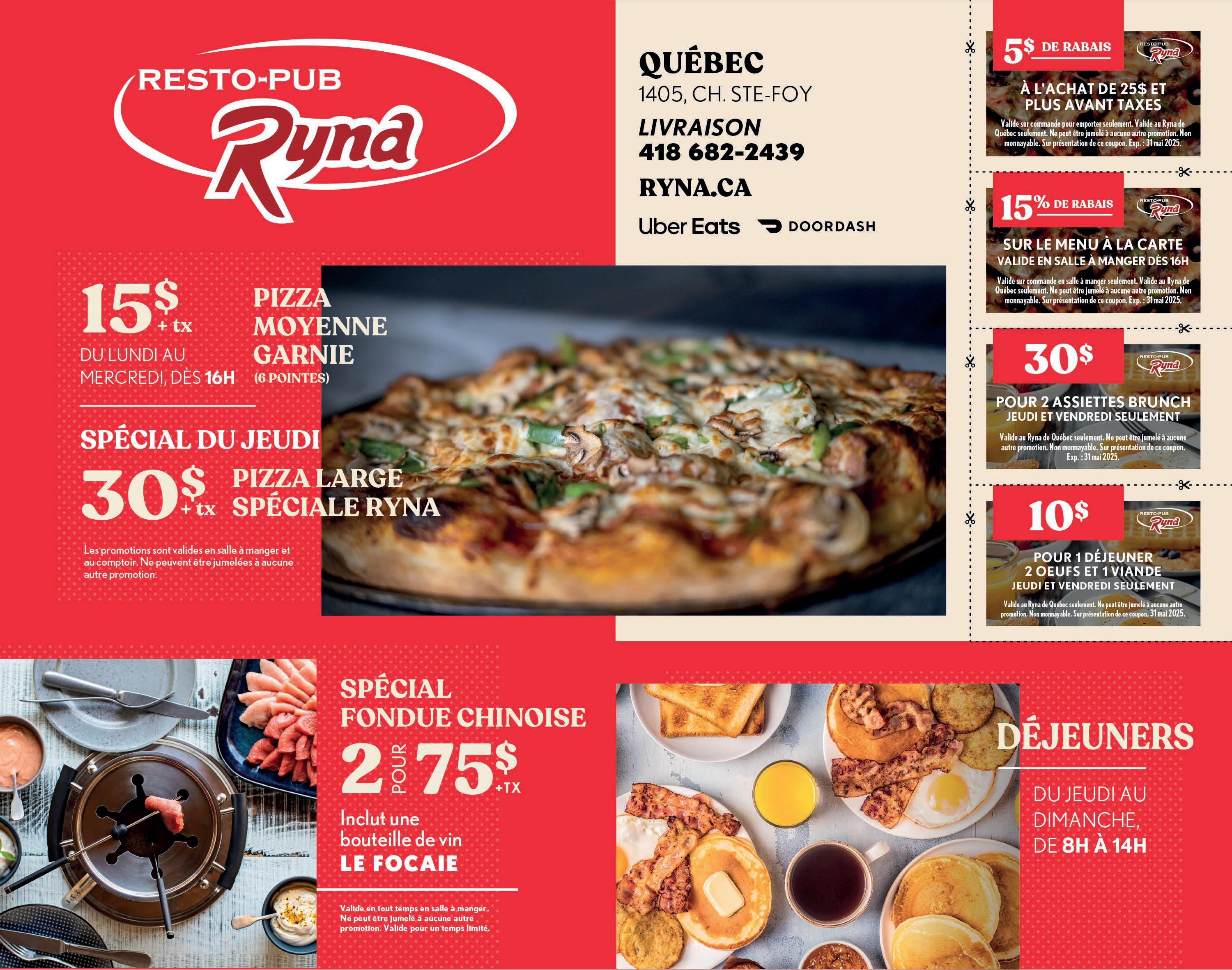 Valide sur place seulement. 1 coupon par facture. Non monnayable. Ne peut être jumelé à aucune autre promotion. Exp.: 31 mai 2025.