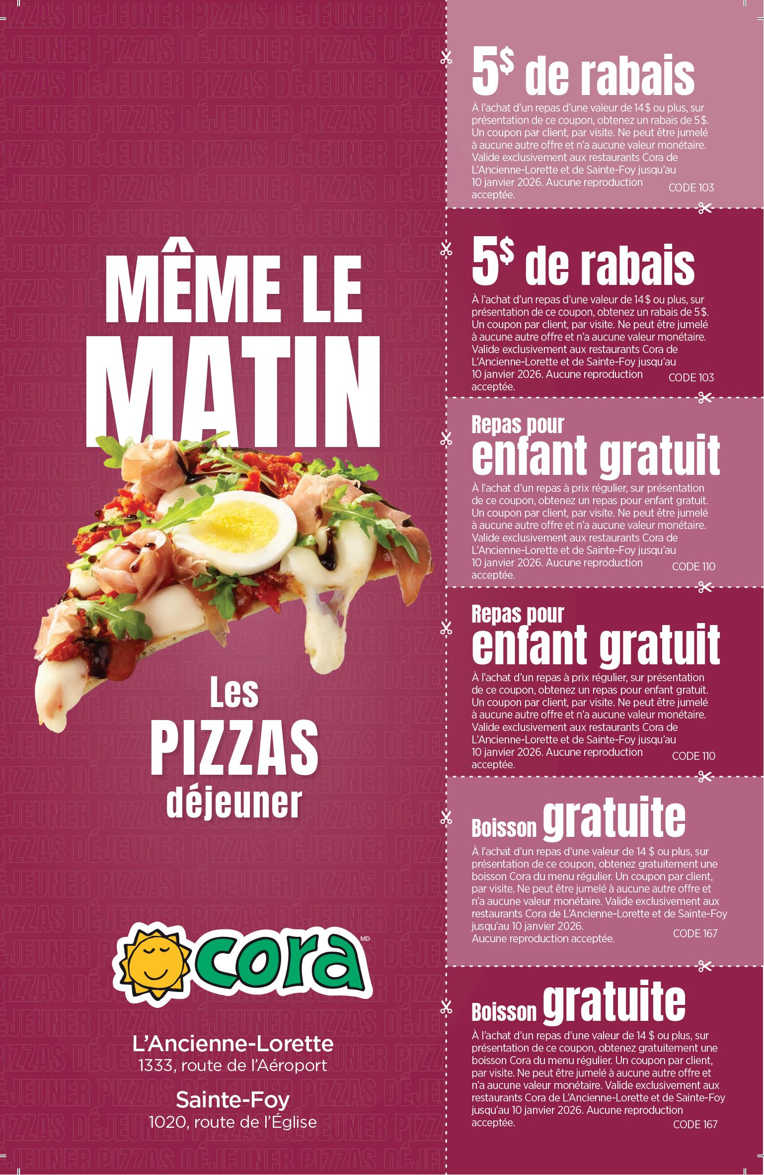 Sur présentation de ce coupon. Non monnayable. Ne peut être jumelé à aucune autre promotion. EXP.: 10 jan. 2026 DE RABAIS