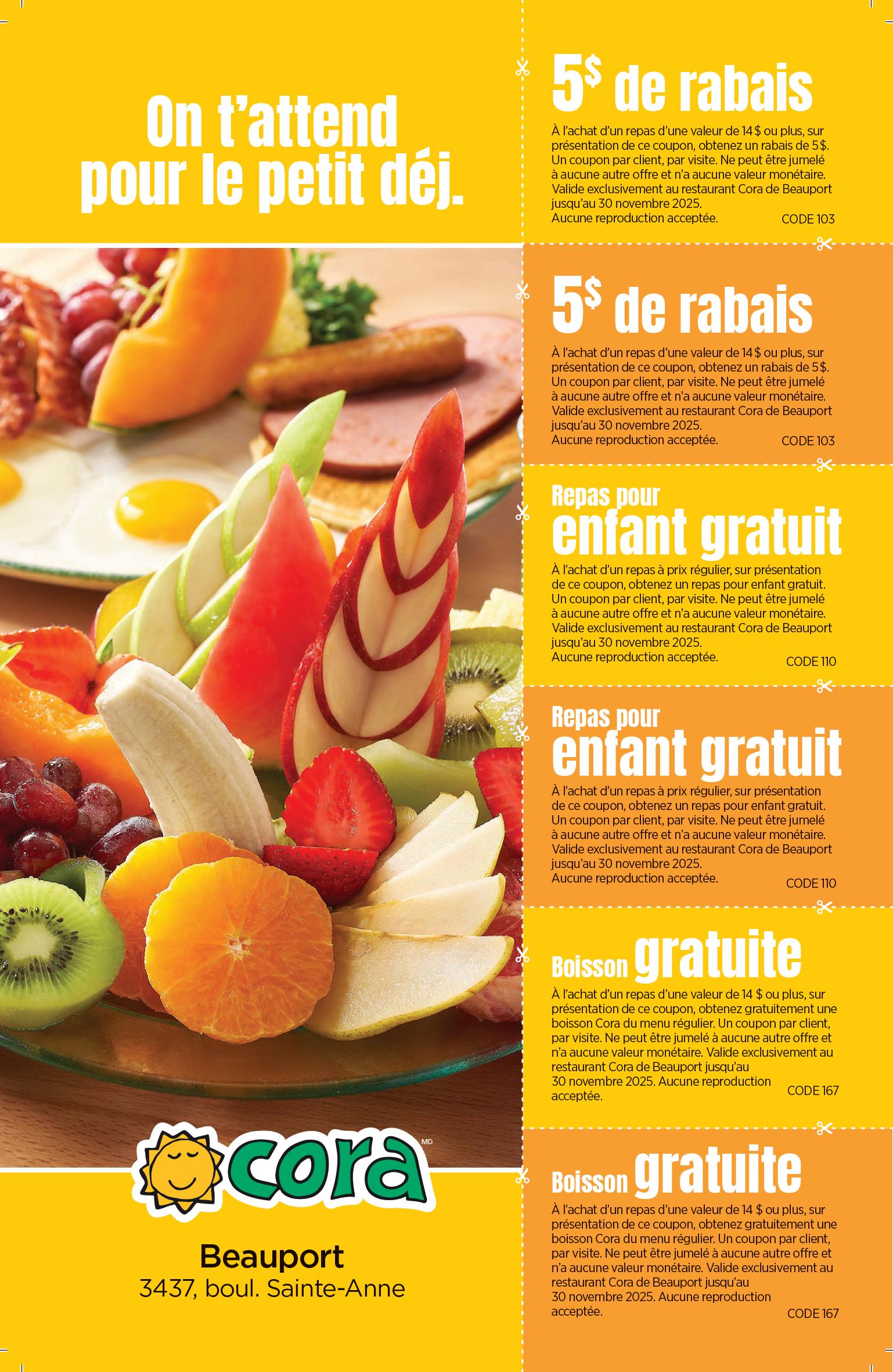 Sur présentation de ce coupon. Non monnayable. Ne peut être jumelé à aucune autre promotion. EXP.: 15 nov. 2025