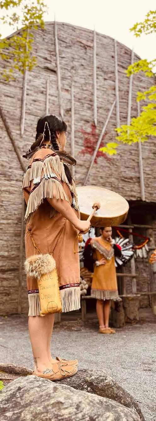 Poursuivez votre journée avec une incursion captivante dans un lieu consacré à la transmission du patrimoine. Expositions, ateliers et visites commentées vous feront explorer l’histoire, les arts et les traditions wendates. Ne manquez pas la maison longue Ekionkiestha’ et le parcours Hatiyöndahskehen’, une aventure immersive d’énigmes. Continue your journey with a captivating dive into Wendat heritage. Exhibitions, hands-on workshops, and guided visits bring to life the history, art, and traditions of the Nation. Don’t miss the Ekionkiestha’ longhouse or the Hatiyöndahskehen’ trail, an immersive puzzle adventure like no other.
