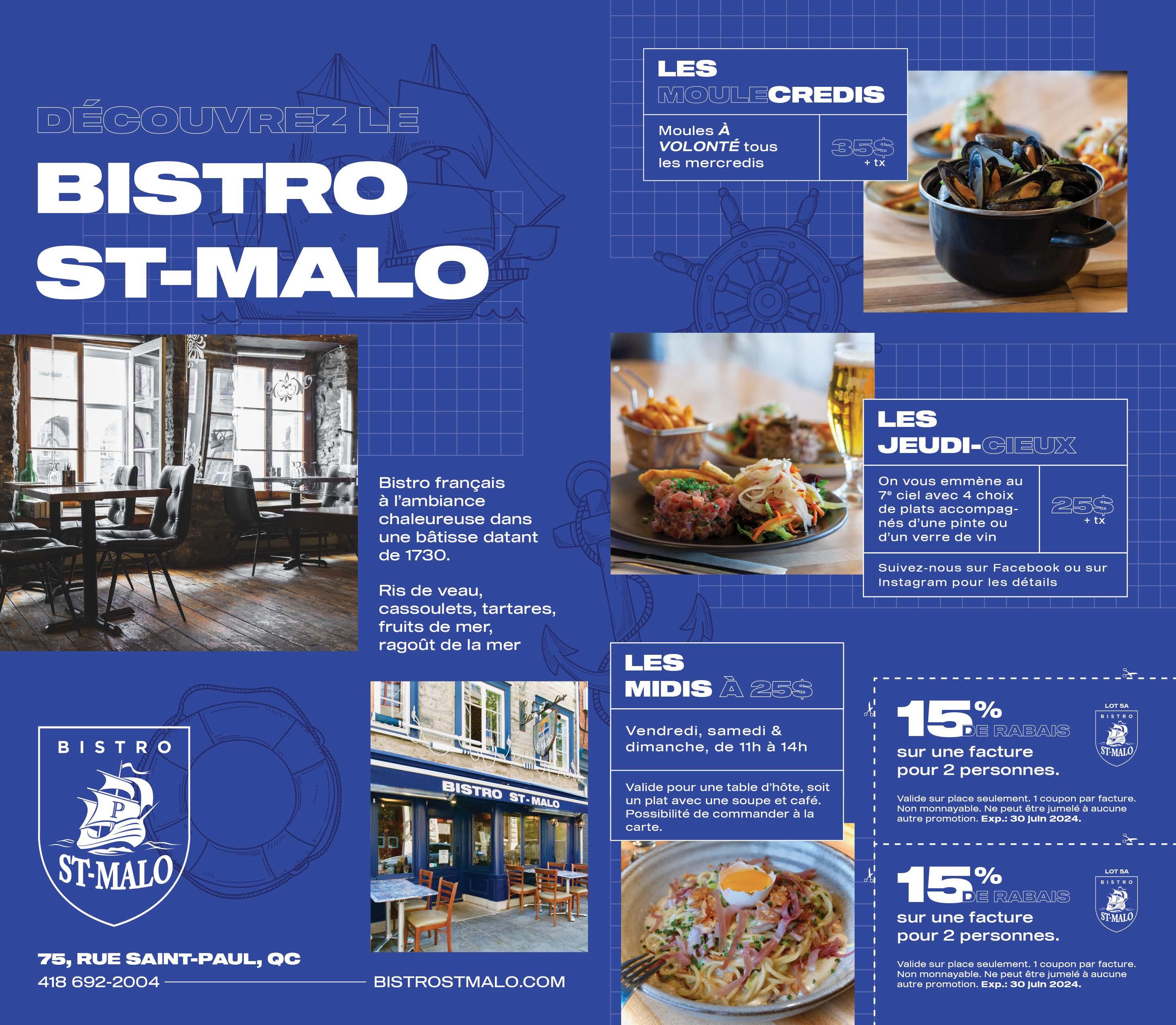 GUEDILLE AU HOMARD CLUB AU HOMARD POUTINE AU HOMARD PIZZA AU HOMARD HOMARD BOUILLI OU GRILLÉ (1.5 LIVRE) FETTUCCINE AU HOMARD SALADE AU HOMARD, POMMES ET FRAISES BISQUE ET VELOUTÉ DE HOMARD du homard Festival Aussi disponibles dans notre boutique! égulière Demie 14.95 16.50 17.25 14.95 herbes) 21.95 21.95 24.75 Poulet 21.75 12’’ 14’’ 21.95 29.95 25.75 32.20 25.75 32.20 26.85 33.95 26.85 33.95 28.70 35.95 28.70 35.95 30.20 37.45 31.85 41.20 18.85 21.95 418 681.6035 COMMANDEZ EN LIGNE ! restaurantsaintgermain.ca 1525, rue Sheppard, Sillery (coin St-Louis)