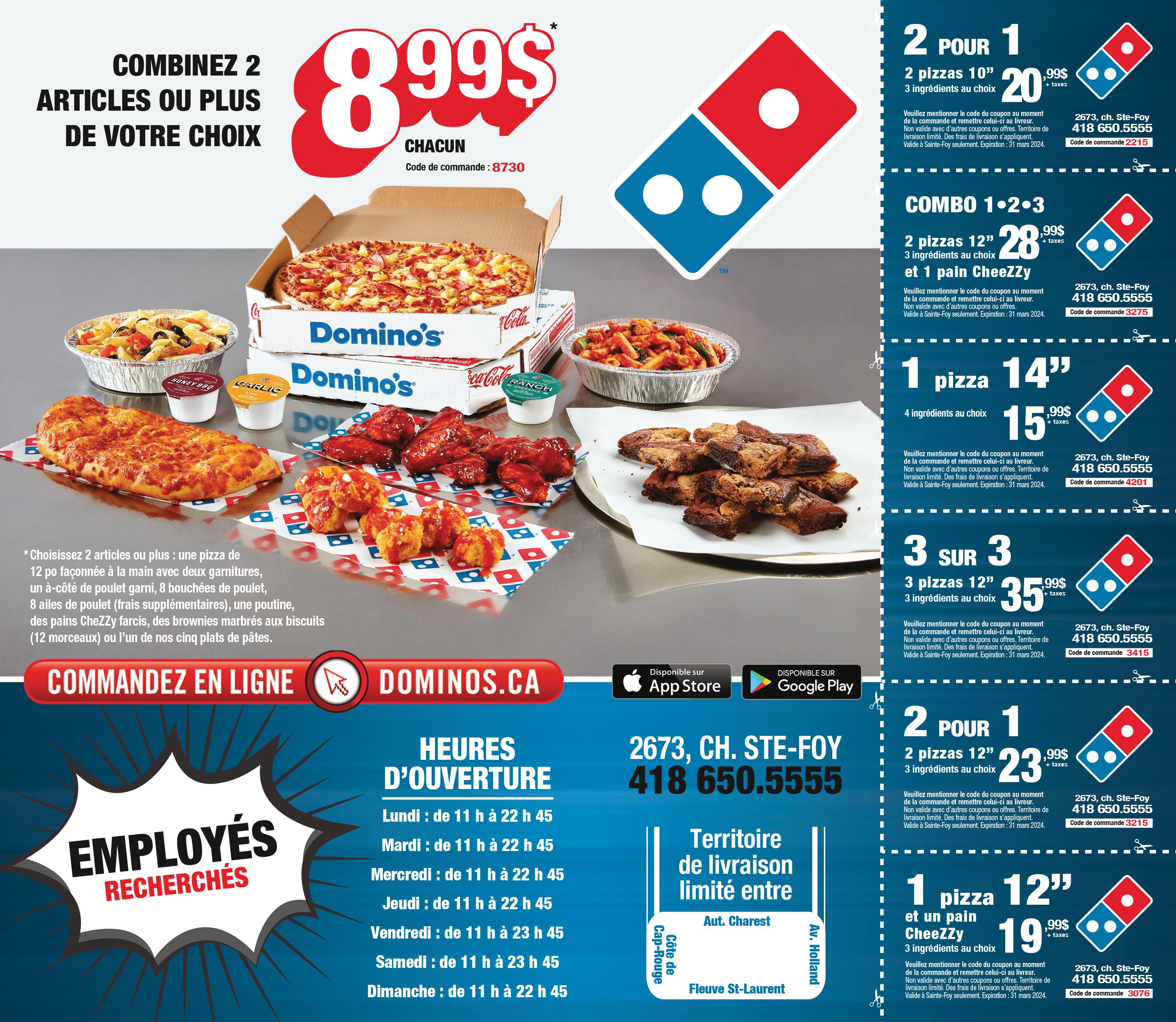 PAIEMENT DIRECT ACCEPTÉ À LA LIVRAISON LIVRAISON : 418 681.6035 Territoire de livraison limité. Montant minimum pour la livraison : 18 $ avant taxes. Les prix peuvent différer lors de votre commande. AU PRIX DE LA SAQ + TAXES EN SALLE À MANGER UNIQUEMENT LES MERCREDIS ET JEUDIS! VINS Pizzas pâte traditionnelle Pâte 10’’ sans gluten disponible supplément 4.50 8’’ Duo 8’’ césar 10’’ 12’’ 14’’ ou spaghetti Napolitaine ............................................ 10.75 ......................... 16 .................. 16.25 ............ 21.95............. 29.95 Sauce tomate, fromage Champignons ......................................... 11.50 .................... 16.75 ................... 17.95 ............25.75............. 32.20 Sauce tomate, champignons Pepperoni 11.50 16.75 17.95 25.75 32.20 Sauce tomate, pepperoni Végétarienne ......................................... 12.65 ..................... 17.90 ...................18.55 ............26.85............. 33.95 Oignon, champignons, poivron, cœurs d’artichauts, tomate fraîche Garnie 12.65 17.90 18.55 26.85 33.95 Pepperoni, champignons, poivron Poulet BBQ. 13.25 18.50 19.95 28.70 35.95 Sauce BBQ, poulet épicé, oignon, tomate, fines herbes Saint-Germain ....................................... 13.25 .....................18.50 ...................19.95 ............28.70............. 35.95 Sauce tomate, pepperoni, champignons, poivron, oignon, bacon Gourmet 13.85 19.10 20.50 30.20 37.45 Sauce spaghetti, pepperoni, champignons, poivron, oignon, bacon, tomate fraîche Fruits de mer ......................................... 14.85 ..................... 20.10 .................. 22.95 ............ 31.85............. 41.20 Sauce tomate ou béchamel, crevettes, pétoncles, poivron, champignons