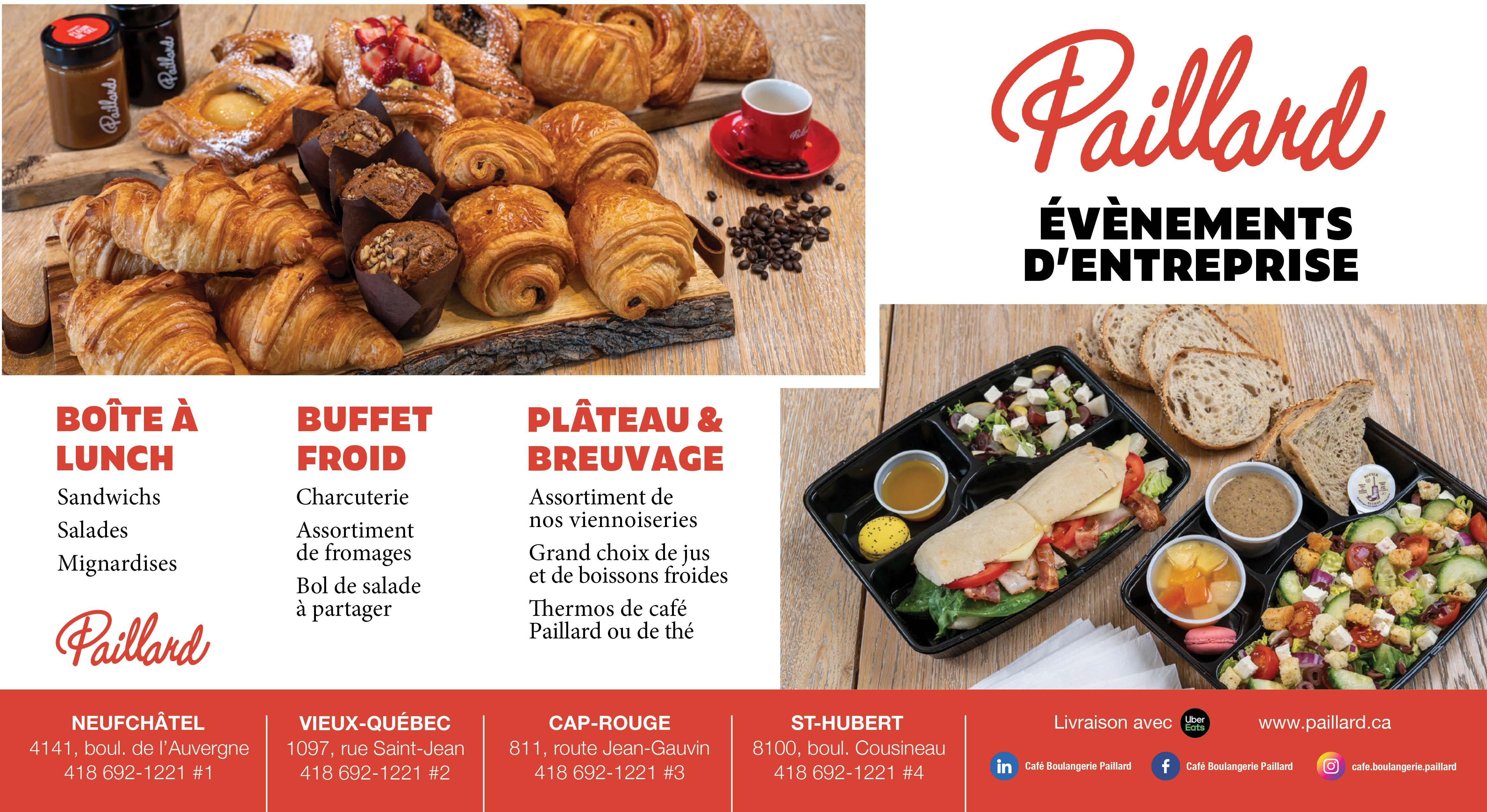 Cuisse de poulet 17,75$ Poitrine de poulet 19,75$ Demi-poulet 20,75$ Filets de poitrine (4) 19,25$ Sandwich chaud (hot chicken) 17,50$ Brochette de poulet 25,95$ Côtes levées (14 onces) ................................................................................................................................... 25,50$ * Choix de riz ou de pommes de terre, servis avec sauce BBQ, salade de chou et pain. Clubs sandwichs Au poulet ............................... 19,25$ (poulet blanc, laitue, tomates et bacon) Smoked meat 21,45$ (smoked meat, fromage suisse et laitue) * Disponibles sur pain blanc ou de blé entier, servis avec frites. Thaï Général Tao poulet 21,95$ Général Tao végétarien 21,95$ Sauté à la thaïlandaise au poulet 21,75$ Sauté à la thaïlandaise aux crevettes 24,75$ * Servis avec riz jasmin ou vermicelles de riz. Lasagnes Demi Régulière Familliale Lasagne garnie Saint-Germain 16,90$ 24,00$ 38,50$ (sauce à la viande, pepperoni, champignons, oignon, piments et bacon) Lasagne à la viande.......................... 14,95$ .............................. 21,90$ .................................. 35,50$ Lasagne végétarienne ........................ 14,95$ .............................. 21,90$ .................................. 35,50$ Lasagne aux fruits de mer 17,25$ 25,35$ 46,50$ PSID O N