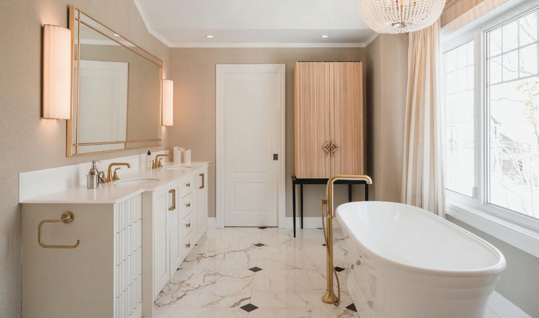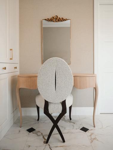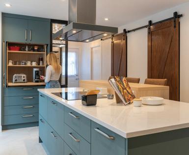 L’élégante cuisine comprend un îlot recouvert de marbre avec des armoires inférieures de conception italienne. La configuration a été pensée en fonction d’éliminer les armoires suspendues qui auraient obstrué la vue panoramique.