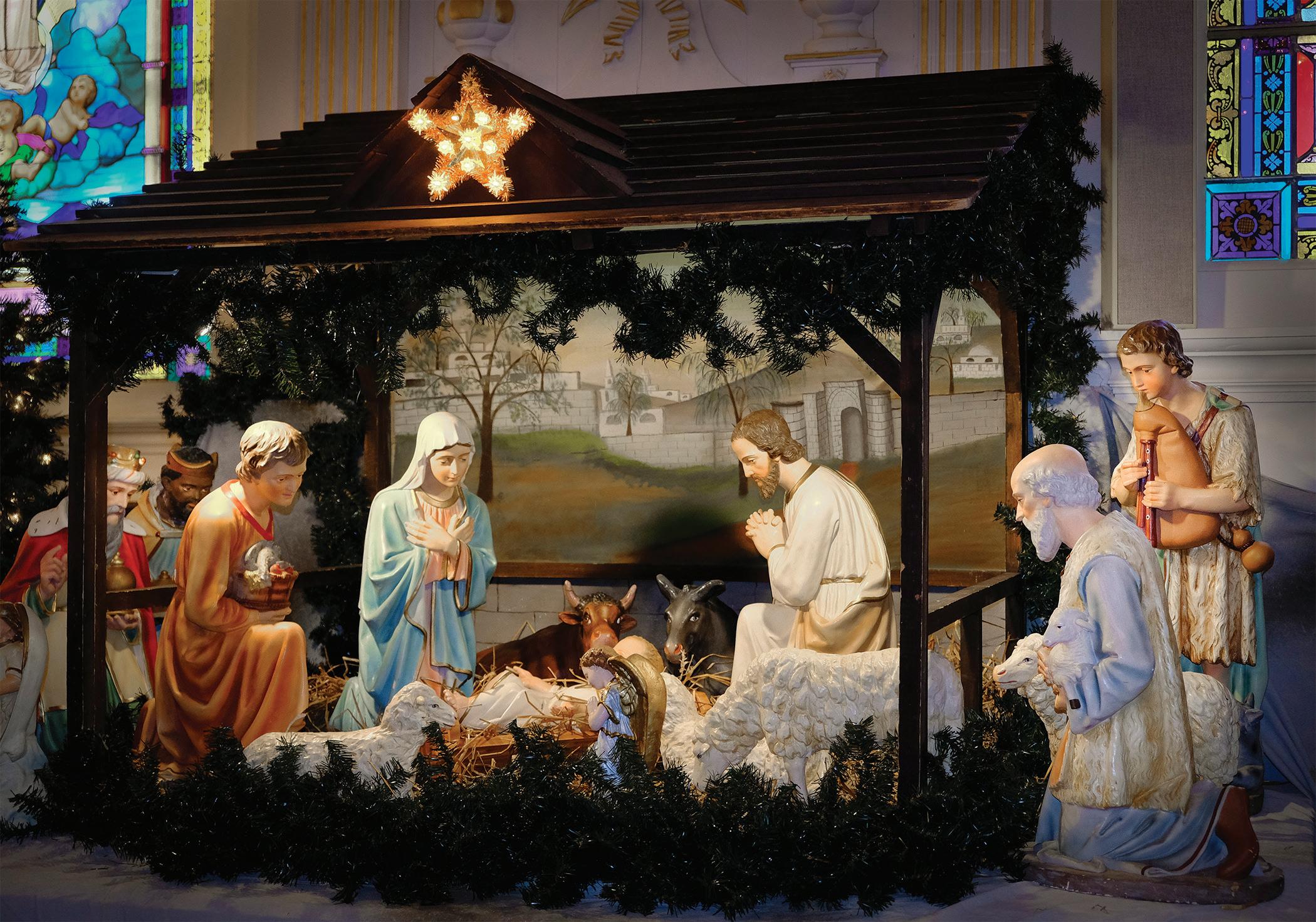 Traditionnellement, c’était pour la messe du matin des Rois, le 6 janvier, que le sacristain ajoutait les Rois mages. C’est l’évangéliste saint Mathieu qui nous parle de l’adoration des mages venus d’Orient et de leurs présents à l’Enfant Jésus : de l’or, de l’encens et de la myrrhe. Au Moyen Âge, on en fit des Rois mages et on les baptisa Gaspard, Balthazar et Melchior. Peut-être nous pardonneront-ils d’avoir souvent confondu leurs dromadaires avec des chameaux ? Et une bonne vieille crèche de chez nous n’est pas complète sans son ange quêteur. À chaque pièce de monnaie que l’on glisse dans son gousset, il nous remercie d’un gracieux hochement de tête…
