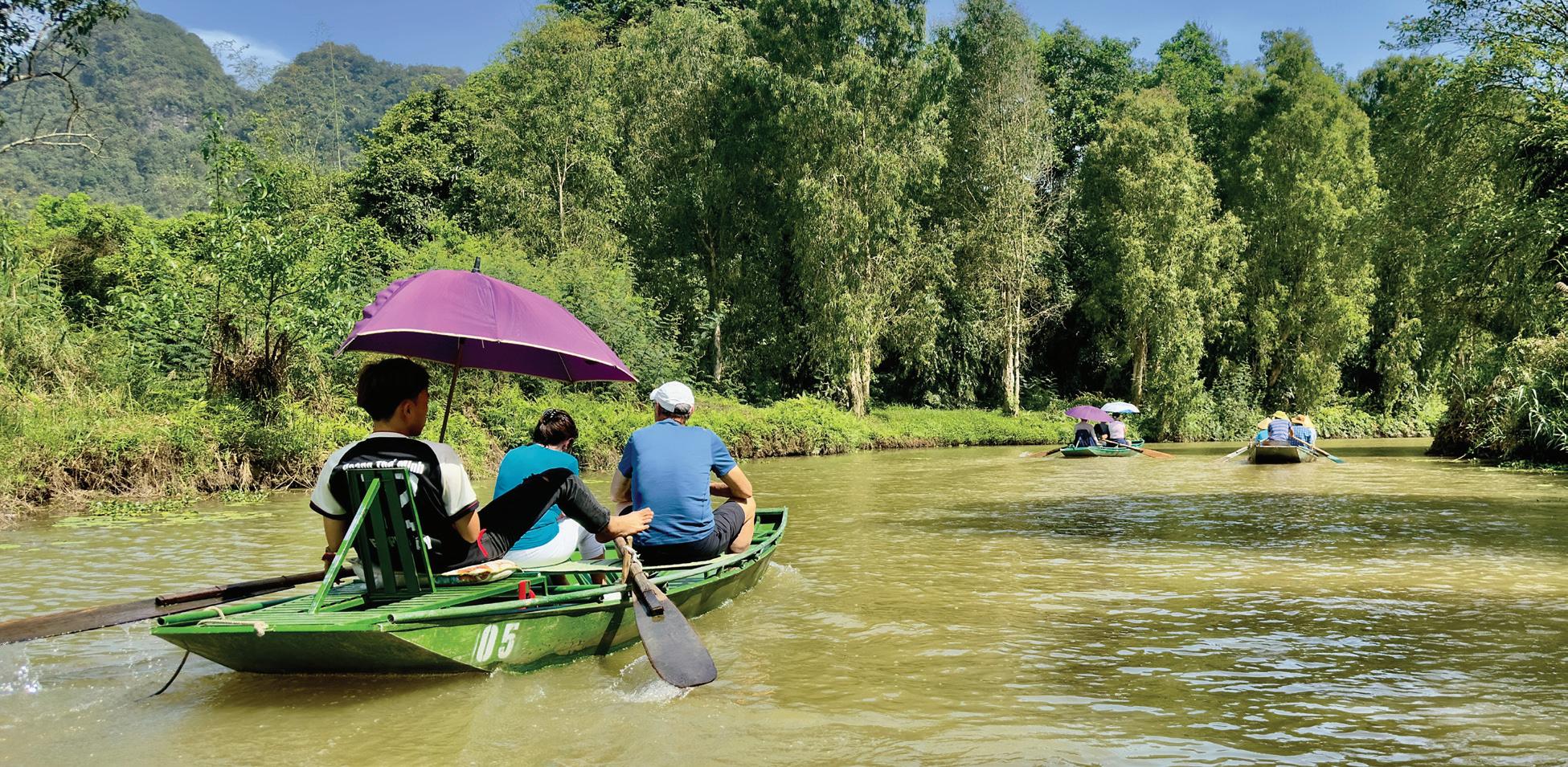 Nous avons aussi visité Ninh Binh, une région surnommée la « baie de Ha Long terrestre » pour ses paysages karstiques époustouflants. Nous avons vécu une expérience aussi paisible qu’insolite : une promenade en sampan glissant au fil de l’eau à travers grottes mystérieuses et pitons rocheux majestueux. Le spectacle était aussi sur l’embarcation, où les rameuses, avec une dextérité étonnante, maniaient les rames… avec leurs pieds ! Un ballet à la fois amusant et fascinant, qui ajoutait une touche d’authenticité à cette escapade au cœur de la nature vietnamienne.