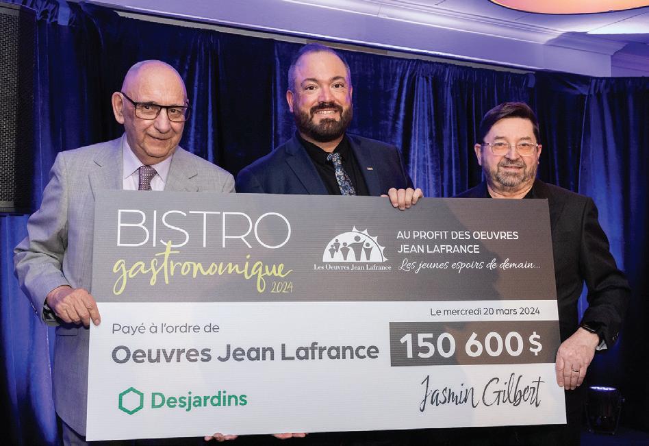 Le 20 mars dernier s’est tenu le Bistro gastronomique à l’Hôtel Le Bonne Entente sous la présidence d’honneur de Sébastien Ménard, éditeur et rédacteur en chef du Journal de Québec . L’événement a permis d’amasser la somme de 157 000 $, qui permettra d’assurer une pérennité aux Œuvres Jean Lafrance, organisme qui héberge et accompagne de jeunes garçons âgés de 12 à 18 ans en leur offrant le soutien nécessaire pour favoriser leur autonomie et leur réadaptation sociale. lesoeuvresjeanlafrance.ca