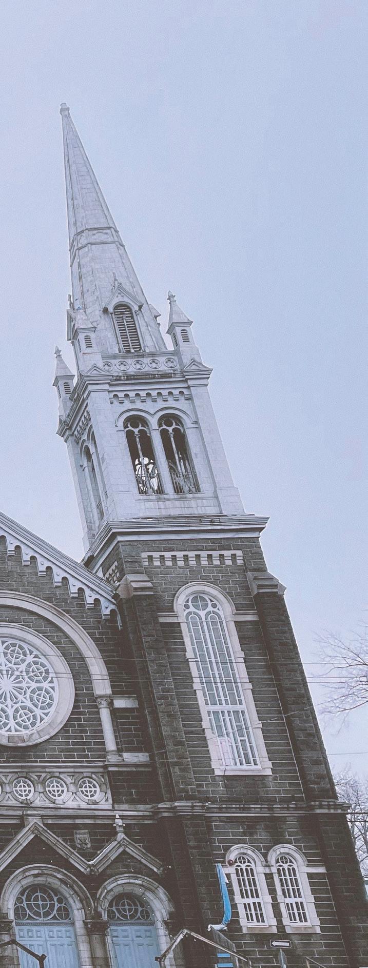 L’imposante façade de l’église Saint-Charles de Limoilou et ses deux hauts clochers.
