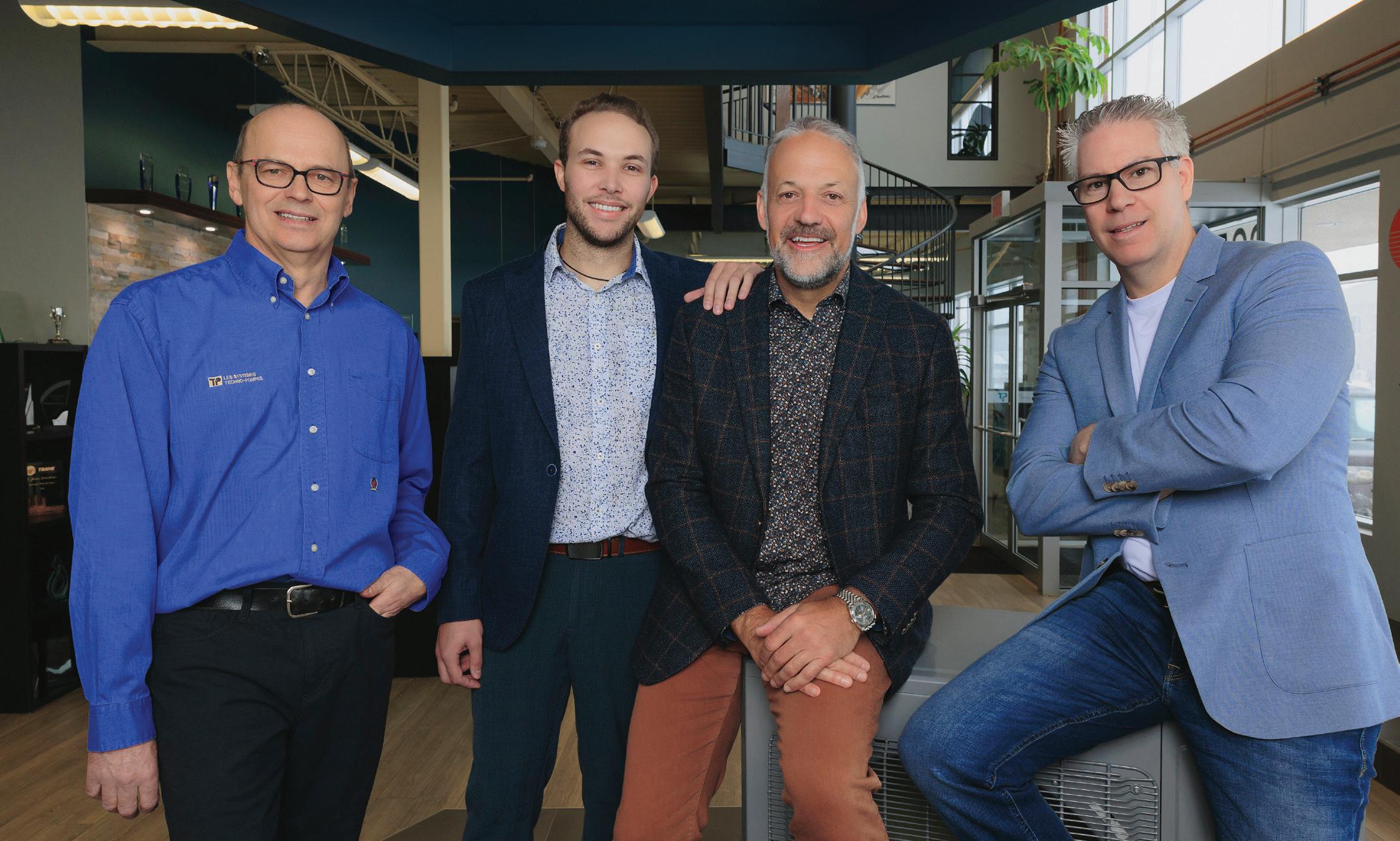 Denis Tardif, chargé de production; Pierre-François Therrien, superviseur conception et représentant des ventes; Michel Massicotte, chargé de projet en aménagement paysager; Jessie Desrochers, conceptrice d’aménagement paysager; Julie Fournier, présidente et directrice générale des Artisans du Paysage; Maxime Boulay, concepteur d’aménagement paysager; et Christian Brunet, vice-président chez Hydralis inc.