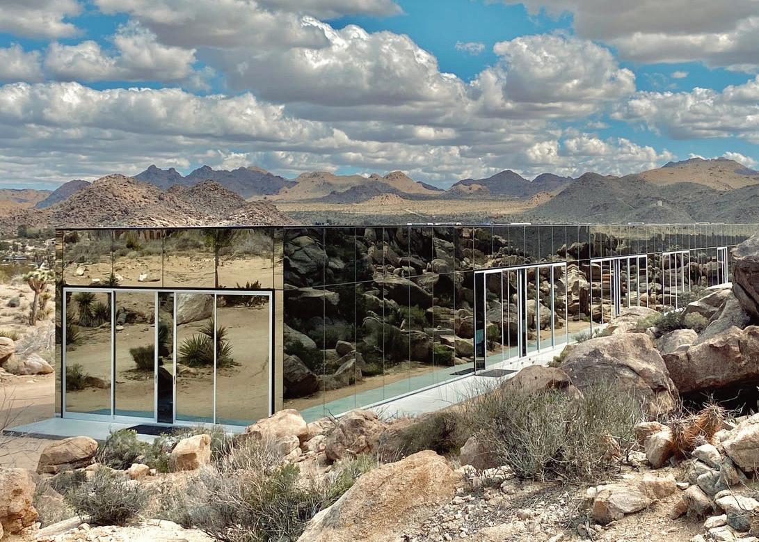L'aspect le plus stupéfiant de la Maison Invisible est sans doute son extérieur miroitant, qui non seulement lui donne son nom, mais aussi crée une interaction magique avec le paysage environnant. Totalisant 5 500 pieds carrés d’espace habitable au sein d'un impressionnant terrain privé de 90 hectares jouxtant le parc national de Joshua Tree, la Maison Invisible est un refuge minimaliste élégant au milieu d'un paysage à couper le souffle. Sa conception révolutionnaire présente une façade entièrement en miroir, permettant à la structure de se fondre harmonieusement dans son environnement désertique, créant ainsi la parfaite illusion de disparaître dans le paysage rocheux. Ce surprenant concept architectural permet aux résidents de vivre une expérience immersive fusionnelle avec la nature et d’apprécier pleinement les couchers de soleil du désert grâce à l'orientation ouest de la propriété.