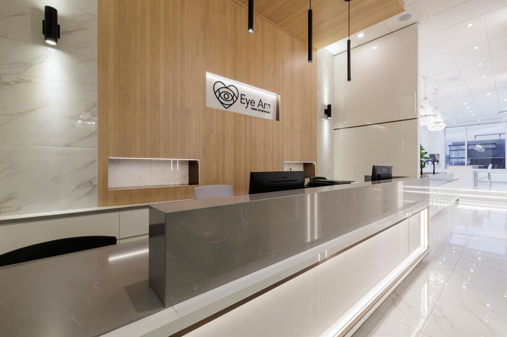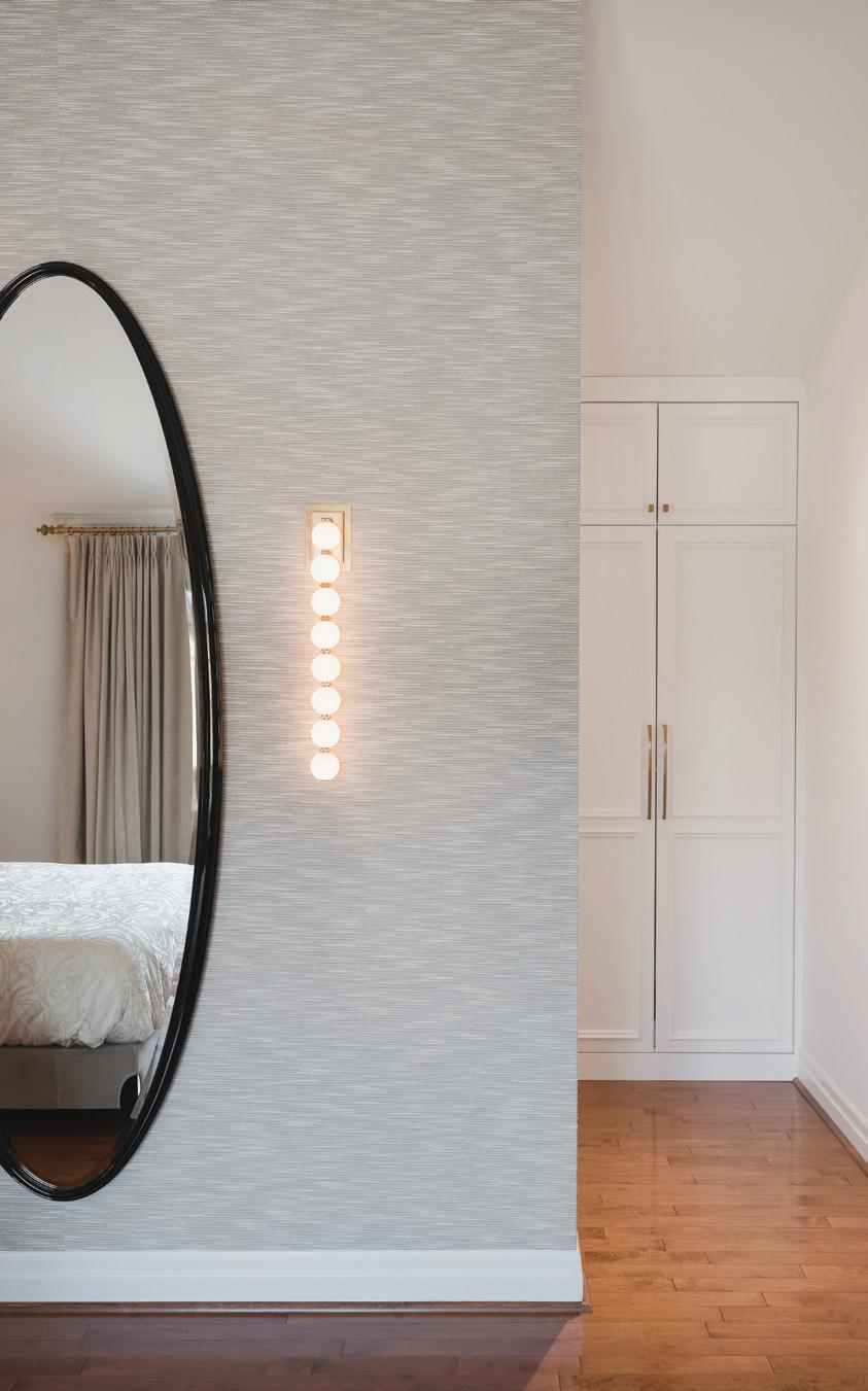 le bain et son mur de miroirs avec des projections à l’entrée. Les aires publiques sont plafonnées d’un ciel étoilé agencé aux corridors bleu nuit qui contrastent à merveille avec les chambres extrêmement lumineuses. Les couleurs vives permettent de dynamiser les espaces tout en offrant un environnement enveloppant.