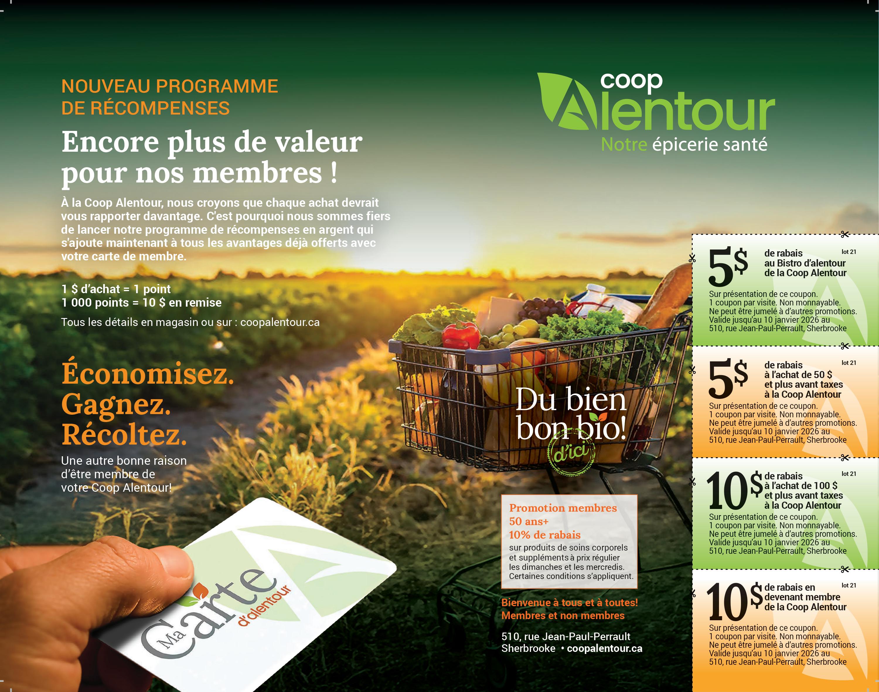 UN COUPON PAR CLIENT. Non monnayable, non jumelable. Sur présentation du coupon. Exp.: 10 janvier 2026. 10% DE RABAIS