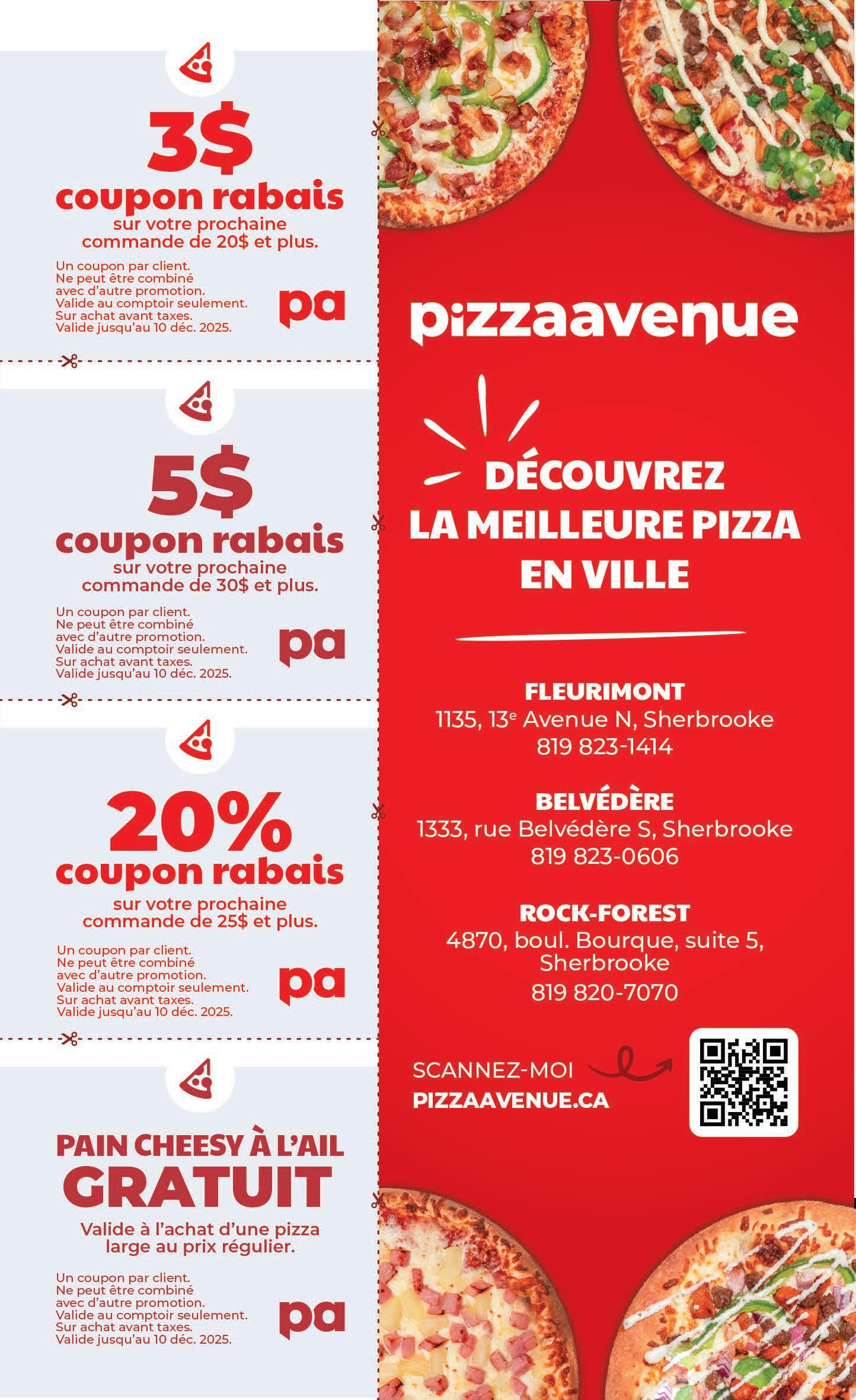 Veuillez mentionner le code du coupon au moment de la commande et remettre celui-ci au livreur. Non jumelable. Territoire de livraison limité. Des frais de livraison s’appliquent. Expiration : 10 décembre 2025.