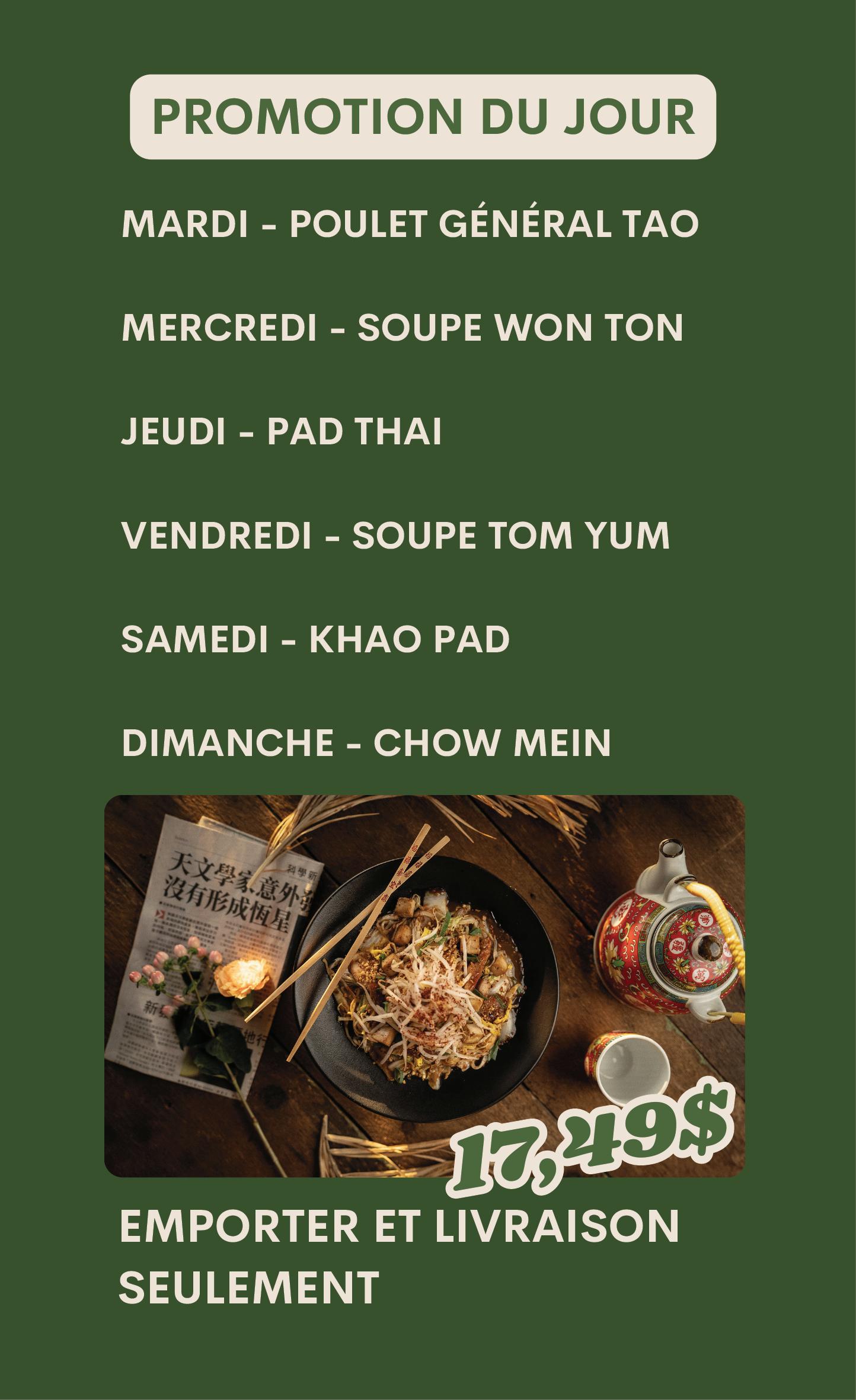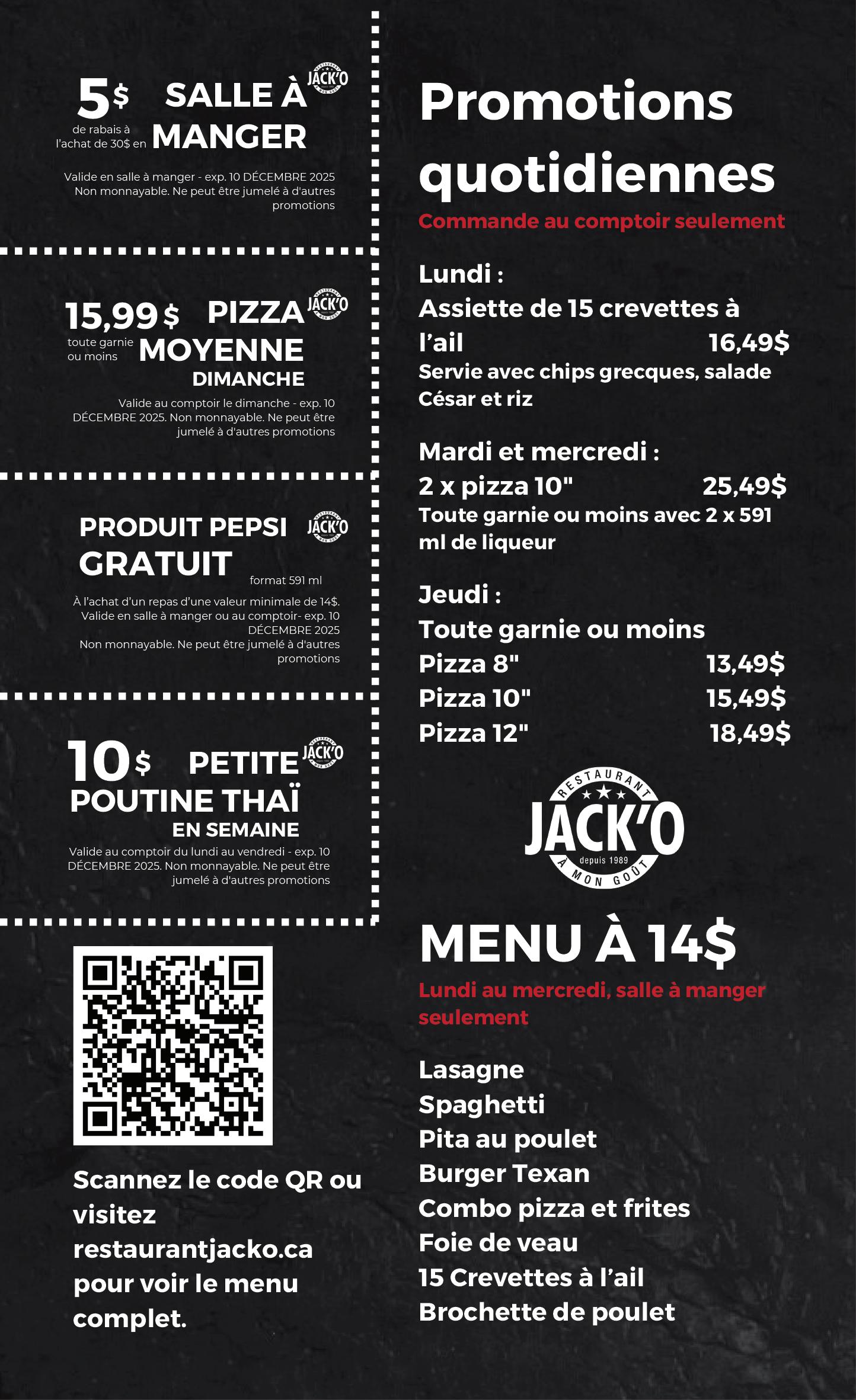 Veuillez mentionner le code du coupon au moment de la commande et remettre celui-ci au livreur. Non jumelable. Territoire de livraison limité. Des frais de livraison s’appliquent. Expiration : 10 décembre 2025.