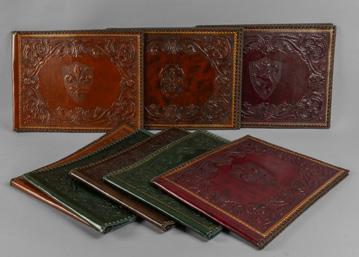 Venti vecchie portafotografie in cuoio impresso offerta libera