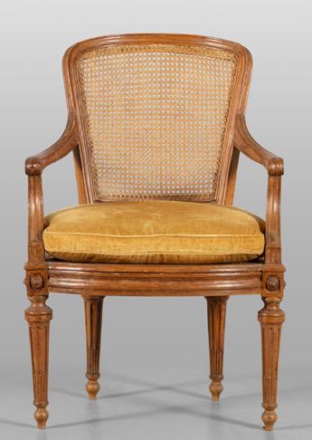 Coppia di poltrone più una Luigi XVI in legno finemente intagliato e laccato, schienali traforati, Venezia sec.XVIII (carttivo stato) e poltrona Luigi XVI in legno dorato