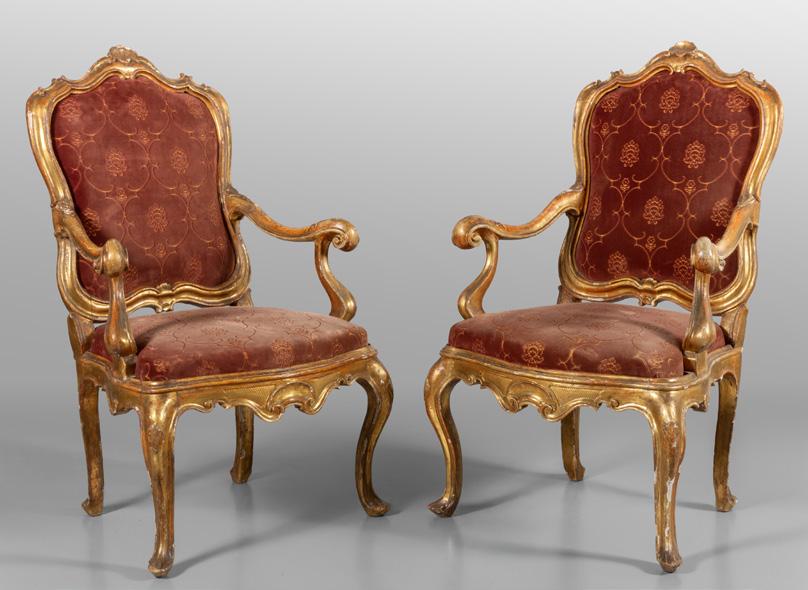 Poltrona ad osso di montone in noce tapezzata in velluto rosso, Genova sec.XVIII € 200/250
